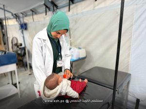 تواصل الطواقم الطبية في مستشفى الكويت التخصصي الميداني أداء واجبها في تقديم الرعاية الصحية اليومية لآلاف المرضى والجرحى، رغم الظروف الصعبة والنقص الكبير في الأدوية والمستلزمات الطبية، وتهالك العديد من الأجهزة نتيجة آثار الحرب على قطاع غزة.